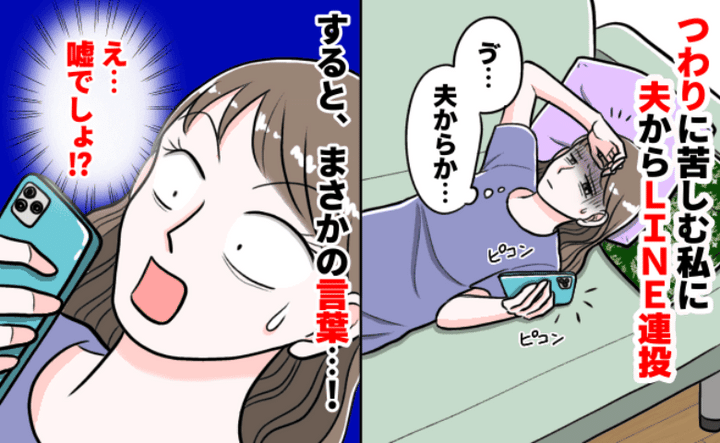 「え…ウソでしょ?」つわりで動けない私に夫からLINEの嵐。メッセージを開き二度見!衝撃の発言が