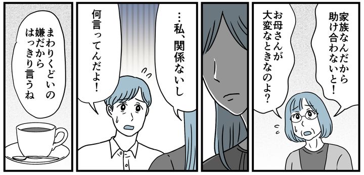 待ち伏せして捕まえるなんて、少々強引な方法ではあったと思います。ただそれくらい重大なことだと思うし、私たちも必死だったのです。なのにナツキさんは義母の面倒を見るつもりはないときっぱり言い放ったのでした。