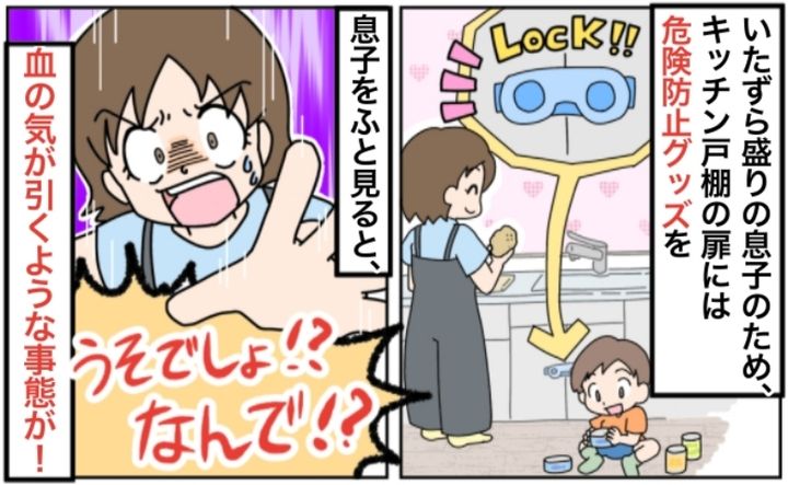 3. 「待って、なんで!?」包丁が入った戸棚にロックをかけたのに1歳の息子が…心臓が飛び出そうな事態に