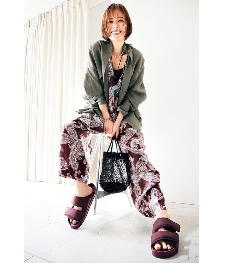 サンダル¥63,800(ビルケンシュトック/ビルケンシュトック・ジャパン カスタマーサービス)シャツ¥39,600サロペット¥53,900(ともにサクラ/インターリブ)中に着たタンクトップ¥13,200(ダン)バッグ¥9,900(ザ バグマティ/ル タロン 有楽町マルイ店)ネックレス¥158,400(ソフィー ブハイ/エスケーパーズ アナザーワールド)ボールチェーンネックレス¥29,700ブレスレット¥39,600(ともにクイップクエイント/フーブス)