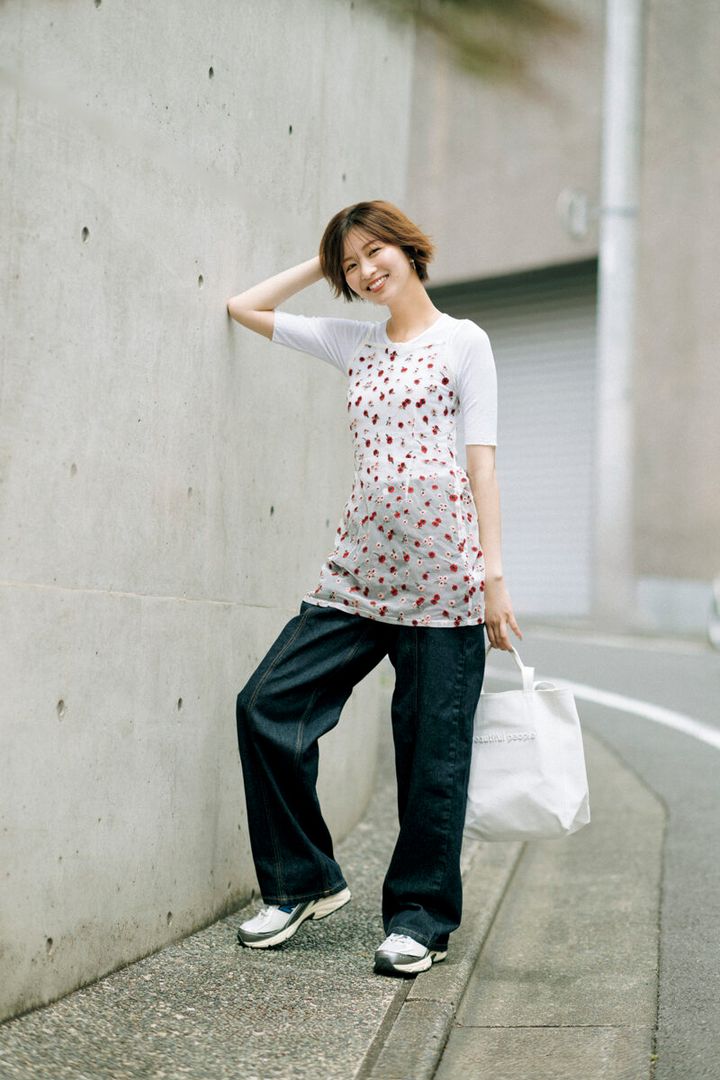 「ショートカットのヘアスタイルで迎えるこの夏は、いつもより着こなしの幅が広がりそうだなと期待しています。カジュアルもフェミニンも、テイスト問わずにちょうどいいバランスでコーデがなじむから新鮮! 基本的に普段のファッションはシンプルにまとめがちですが、今回のコーデのようにトレンド感たっぷりの花柄のシアーキャミを重ねたり、ハッとするような派手色アイテムを取り入れたファッションも楽しめそう。積極的にお洒落を盛り上げていきたい気分です。