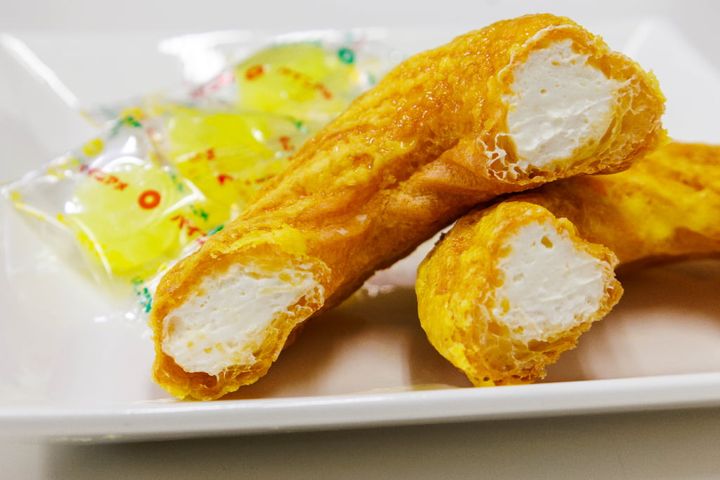 そんな「パインアメ」とタッグを組んだのは、店内でシュー生地を焼き上げ、毎日クリームを手作りしている「ビアードパパ」。定番の「パイシュークリーム」や「クッキーシュー」に加え、「恐竜のガリガリたまごシュー」「シューアイス」など、ユニークな期間限定商品でも知られるブランドです。