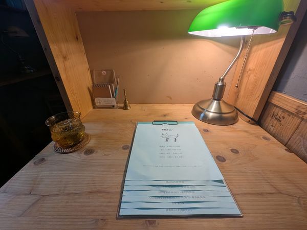 お店に入ってみると、少し薄暗く、そしてアンティークな小物などがあちこちに置かれています。カウンター席・木製のデスク・テラス席とありますが、なかなか他のカフェでは見ることのないような『木製のデスク』に座ってみましたよ。