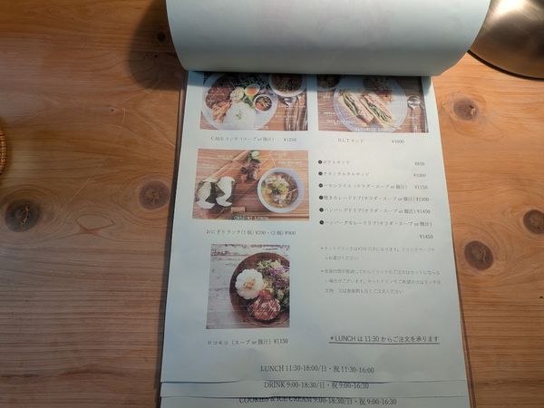 テーブルにはライト、メニュー表、呼び鈴、そして来店された方がおすすめする本のタイトルや感想が書かれた小さなメモ帳がありました。注文したランチを待っている間にメモ帳を読みましたが、読んだことのない本のタイトルがたくさんあり、メモ帳を見ながらメモを取っていました(笑)