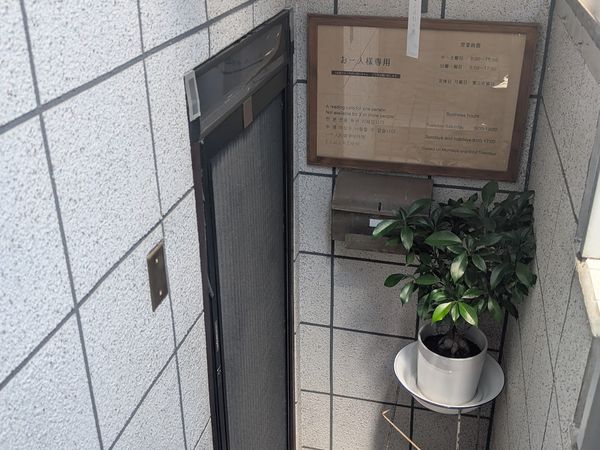 矢印のほうに階段を降りていくと、『お一人様専用』と書かれた看板が。さらに降りていくと、入り口がありました。