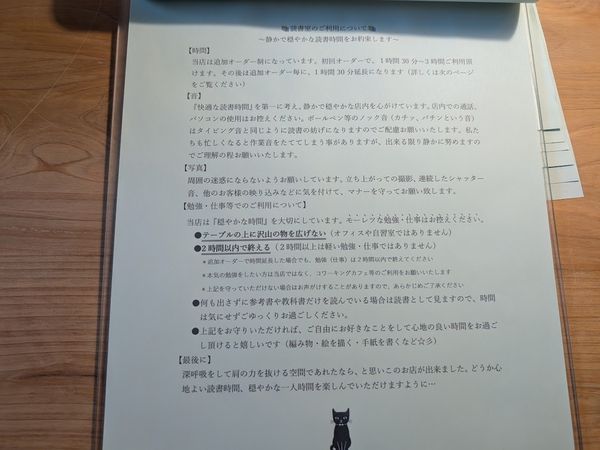 また『読書室』なので、自習室や仕事のための利用は極力控えること、もし利用するとしても2時間以内となっています。字を書いたり、パソコンを使ったりの音は静かな中では結構気になりますもんね。ご自身の本を持っていなくても、店内には自由に読める本がありますよ。