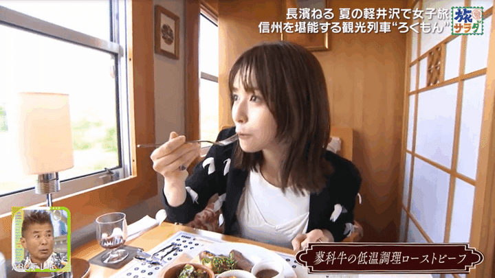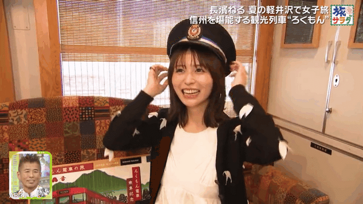 さらに長濱は、軽井沢と⻑野を結ぶ、しなの鉄道の観光列車・ろくもんに乗車。車窓からの絶景を眺めながら、信州の⾷材を使ったコース料理を味わい、贅沢な時間を過ごした。