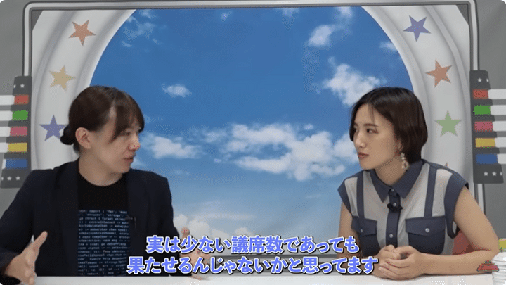 配信では、安野氏の参議院任期中の展望、他政党との連携についてもトーク。参政党党首の神谷宗幣氏や元明石市長の泉房穂氏、自民党大阪府連会長・青山繁晴氏と共演した7月26日の『正義のミカタ』生放送での舞台裏にも話が及ぶ。安野氏に「部屋に遊びに来て」と誘った議員も!?