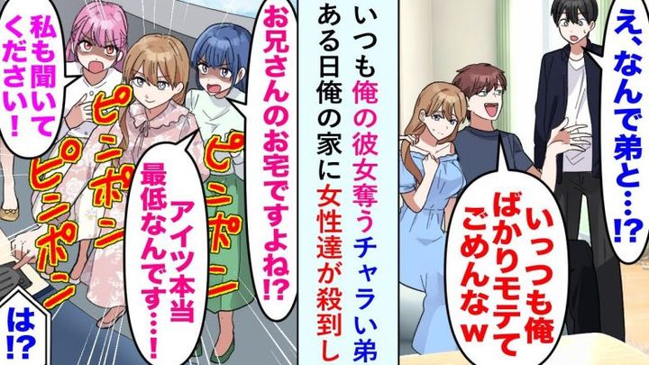 僕の弟は、要領がよく華やかなタイプです。昔から彼女が途切れたことがないイメージで、僕とはまさに正反対。僕が実家を出てからは連絡もあまりとらず疎遠になっていました。そんなある日、弟に振り回されたという女性たちが僕の家に押しかけてくるという、驚きの出来事が起きたのです。