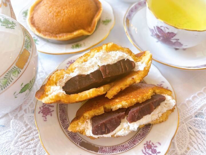 どらもっちの生地って、薄皮なのにほんともっちり食感ですよね。改めて生地の素晴らしさを噛みしめております…!やまいもを加えようと考えた方々に御礼申し上げたいくらいです!手で半分に割るときの楽しさ、その際の粘り気のある伸び…。でも歯切れがよくて食べやすいなんて…。拍手喝采です!!