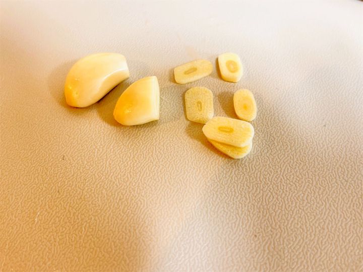 2.にんにくは皮を剥いて薄切りに。