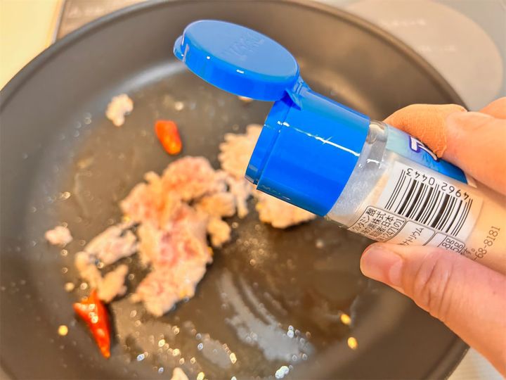 ここでアジシオを5振り程度ふりかけておきます。