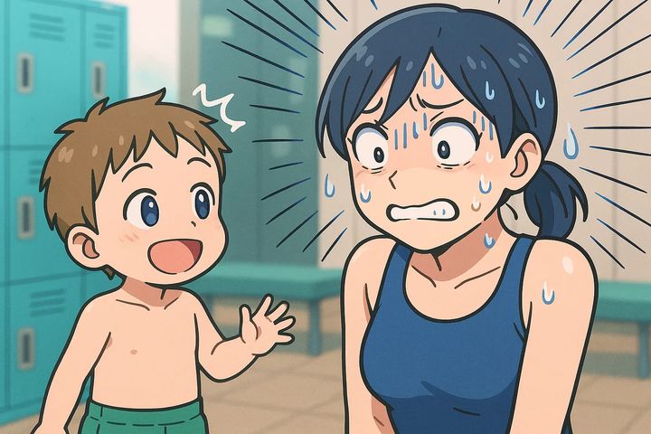 「やめて〜!」プールの更衣室で着替えていたら…息子が放った想定外の質問にその場が凍りつく!
