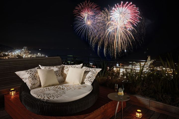 熱海の高台に立つ「リゾナーレ熱海」で、1日1組限定の特別席で、シャンパンやオリジナルパフェを味わいながら優雅に花火観賞ができる「絶景花火旅」の販売がスタート! 贅沢なひとときを過ごせるプラン内容をご紹介します。