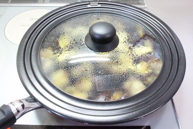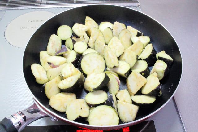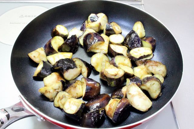 なすの中心までしっかりと火が通るように1分ほど蒸し焼きに。