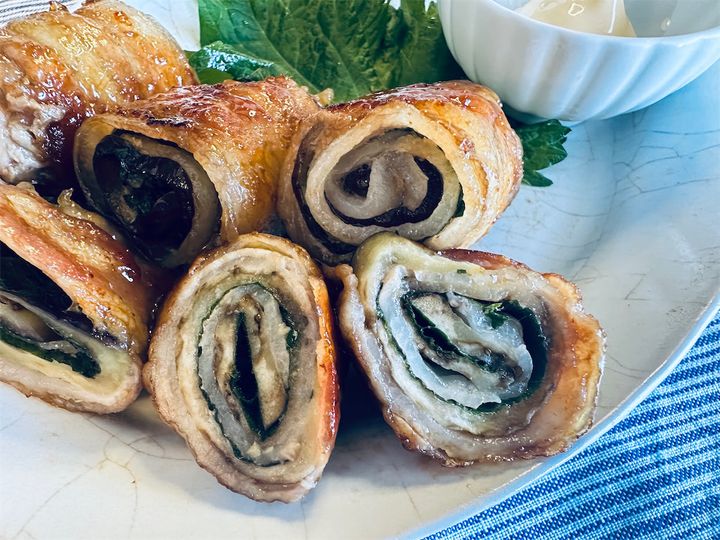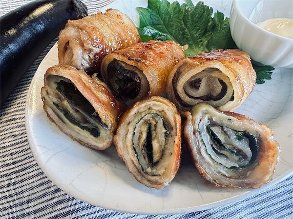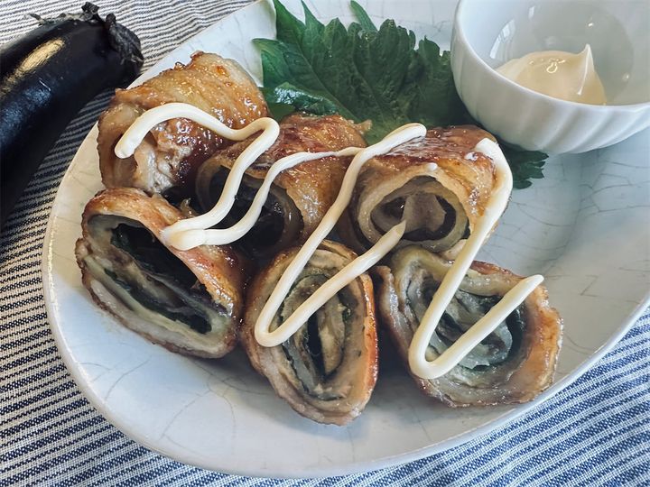 青じその香りフワッ♪「豚バラ肉となすの照りマヨロール」材料と作り方はこちら
