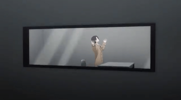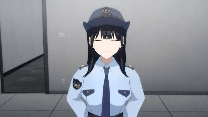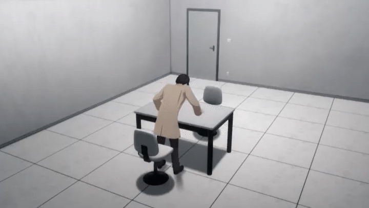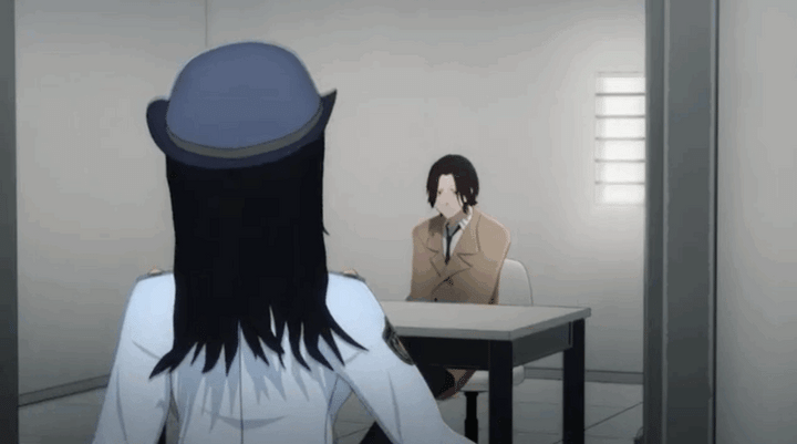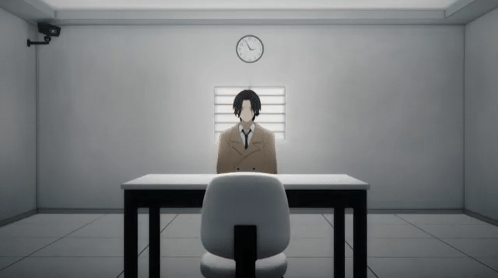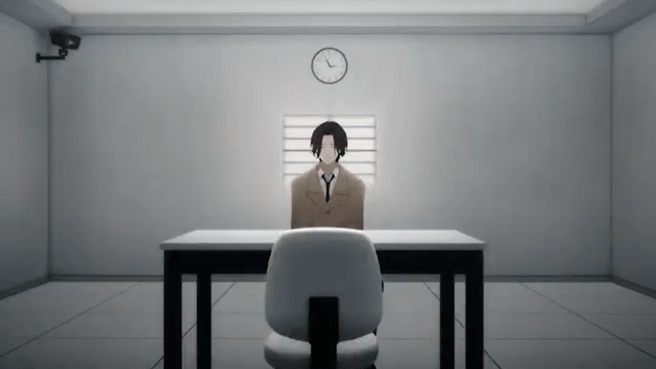 ドアを開けて取調室に入ってきた女性警官(CV:本渡楓)に、「よぉ、いつも悪いな」と声をかける俺(CV:石川界人)。すると、女性からは「いつも慣れっこですから」と返答が。