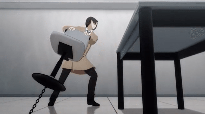 素手では勝ち目がないと考え、椅子を武器に戦おうとする俺だが、チェーンで固定されていて持ち上げることができない。