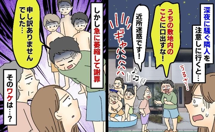 深夜0時すぎに騒ぐ隣家の子を注意すると父親が「敷地内だからいいだろ!」え…?急に萎縮し謝罪したワケ