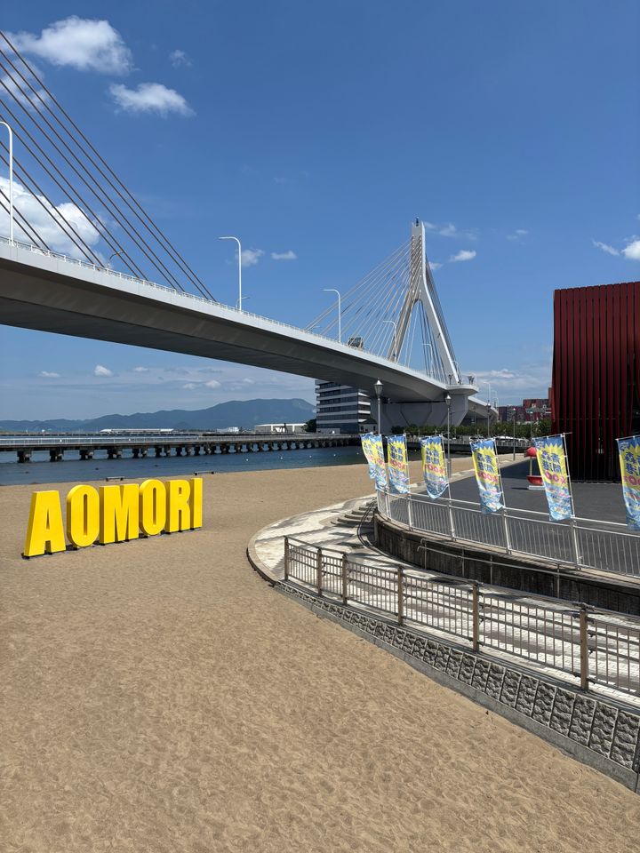 「AOMORI」のモニュメントや「あおもりびっくりんご」などの写真スポットなどもあるはんで、是非来てけ(来てください)〜!