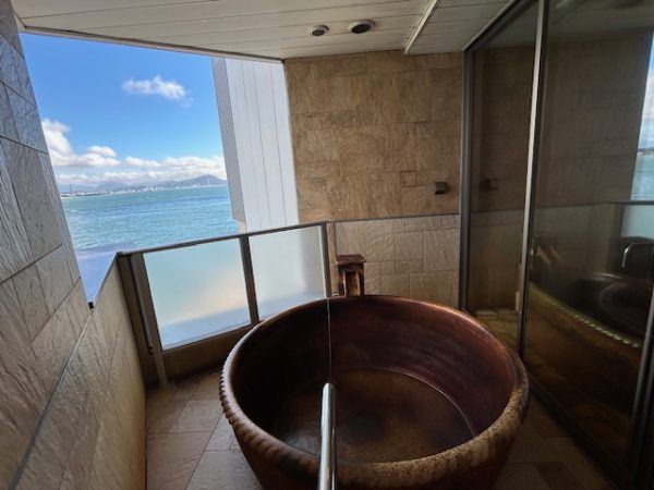 家族風呂の利用だけではなく、実際には宿泊するのが断然いい!このお部屋、そして海に面したお風呂!