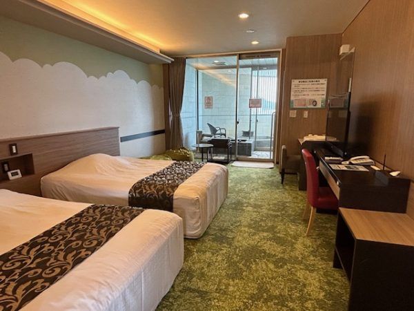 スパ棟隣のホテル側のエントランス。スパで家族風呂を予約するとホテル棟の家族風呂が利用できます。こちらのお風呂がまた格別でした。