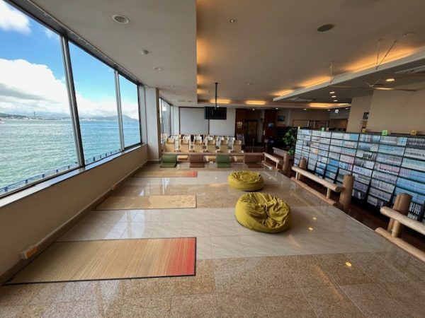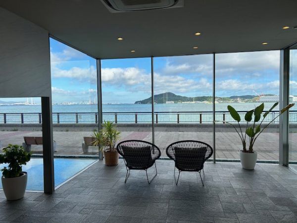 なんと言っても、門司店の魅力はこの立地です。館内どこに居ても海が見えますよ! わたしは、一番海側にある炭酸のお風呂がお気に入りです。炭酸泉を求めて時々大分まで出かけているので、ここで入れるのはありがたい!細かな泡がからだにびっしりとついて、それをさあーっと撫でてじゅわじゅわ感を楽しみます。