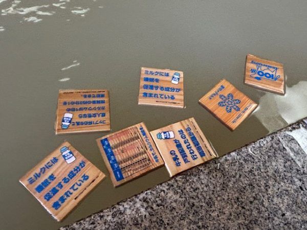 ミルクをイメージした、ほんのり甘い香りの乳白色のお湯にヒノキのプレートが浮かんでいます。(実際に牛乳が入っているわけではありません)ミルクに関する豆知識を拾い読みしながらゆっくり浸かります。すべすべぬるぬるでしっとりしてくる感じです。