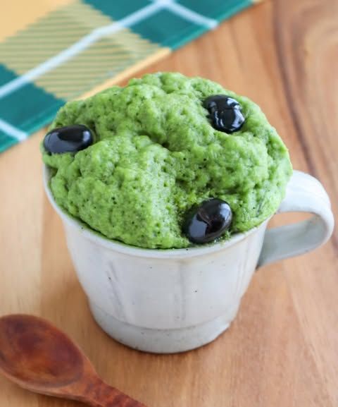 1. 電子レンジ対応のマグカップにホットケーキミックス、抹茶、砂糖を入れて混ぜてから、プレーンヨーグルト、オリーブオイルを加えて粉っぽさがなくなるまで混ぜ合わせる。