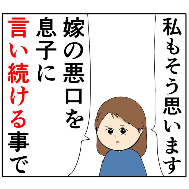 さくらさんも「私もそう思います」とモモさんに同意。そして、「嫁の悪口を息子に言い続けることで」
