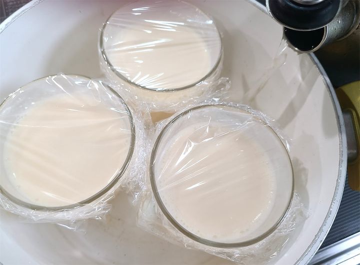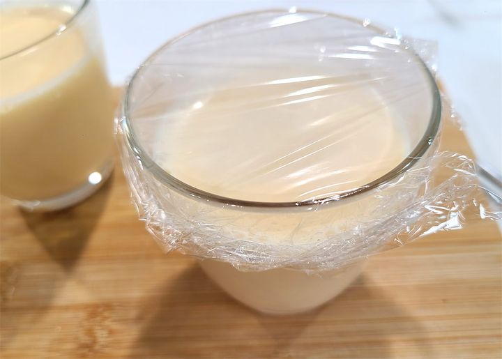 6. お好みの容器に5を流し込み、上からラップをします。