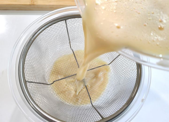 5. よく混ぜたらザルなどで濾します。