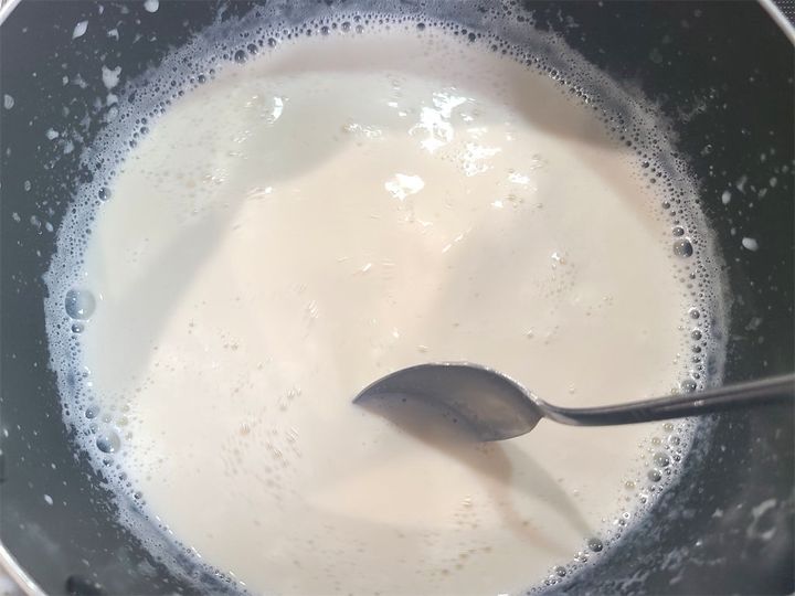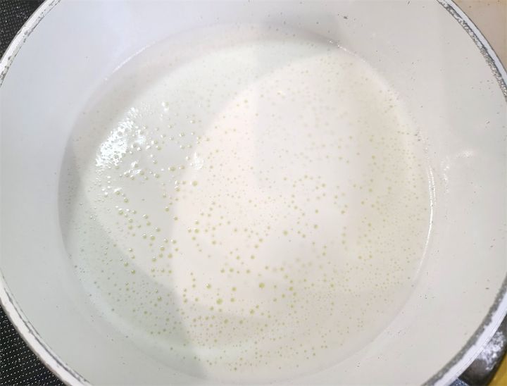 1. 鍋に牛乳を入れ、中火で加熱します。フツフツしてきたら火を止めます。