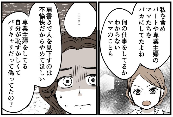 私が広めるつもりはないと言うと、ナオコさんは少しだけホッとした顔をしました。しかし、ナオコさんが今までパートや専業主婦のママたちをバカにして傷つけてきたことは、しっかり反省してもらわないといけません。謝ったナオコさんに私はさらに続けます。