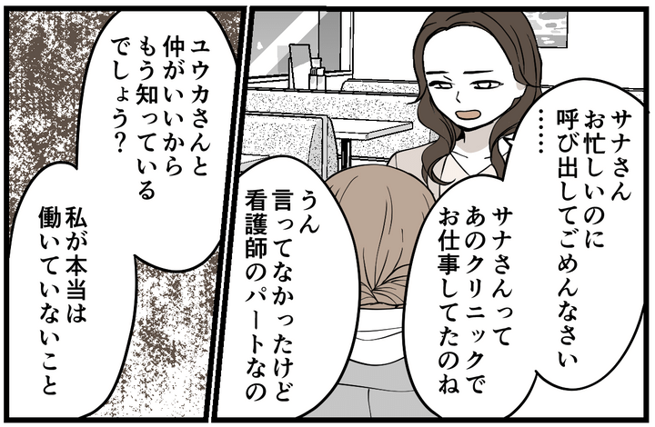 私はサナ(32)。パートで働きながら、夫と2人姉妹(年長&年少)の4人家族で暮らしています。長女の同級生のママ・ナオコさんは大手企業で働いているらしく、憧れているママも少なくありません。しかし私としてはパートや専業主婦のママを下に見る発言が多くてモヤモヤしています。そんななか、ナオコさんがバリキャリというのが嘘だったと発覚! ひとこと言ってやりたいと思っていた矢先、ナオコさんが私のパート先のメンタルクリニックにやってきました。