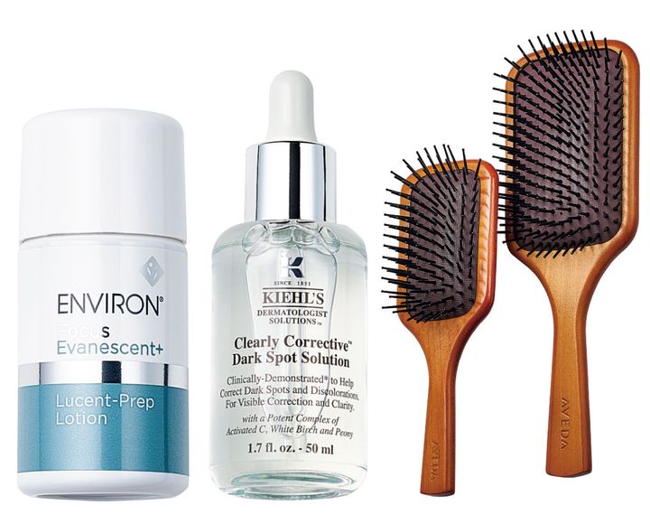 「朝、体の巡りが悪い時に頭皮に刺激を与えます。側頭部と頭頂部を強めにマッサージ。泊まりロケにはミニサイズを持参するほど愛用」左¥4,400、右¥5,060(ともにアヴェダ)