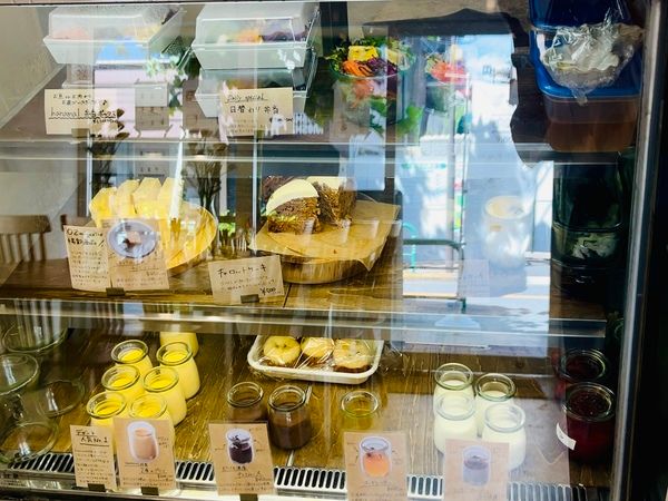 レジ横のショーケースには、スイーツや日替わりのお弁当が並んでいました。