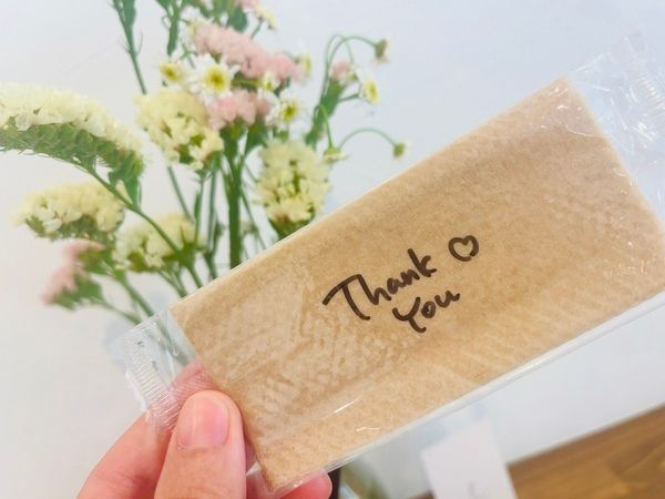 なんと袋には、スタッフさんがひとつひとつ手書きで「Thank You」の文字を添えているのだそう。