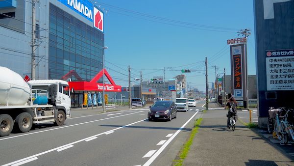 つきみ野駅の改札口を出て右に回り、東急ストアを左に見ながら歩いていくと、ドラッグストアの「クリエイト」があり、家電の「ヤマダ」も見える、車の往来の激しい道に出た。これが国道16号の旧道で、左に行けば町田や八王子に繋がっている、神奈川県内では有名な幹線道路。沿道には郊外型の店舗が並んでいるので、自家用車を所有する生活者には便利な通りである。