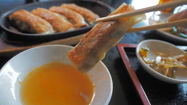 韮鉄餃子(棒状の餃子)はどのランチメニューにも、2本180円で付けられる。具がびっしり詰まっているのでボリュームがある。