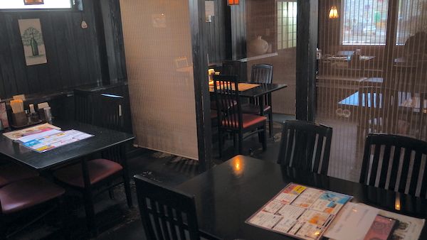 テーブルと椅子の席以外に、奥に掘りごたつ式の席が見える