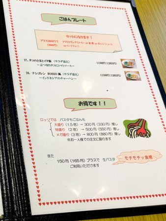 パスタもごはんも「大盛り」「特盛り」「メガ盛り」にできます
