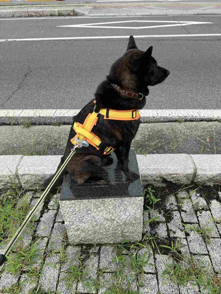 こちらは、かぶちゃんを横から撮影した写真。 飼い主さんがリードを引っ張ろうにも、微動だにしない雰囲気がありますね~。