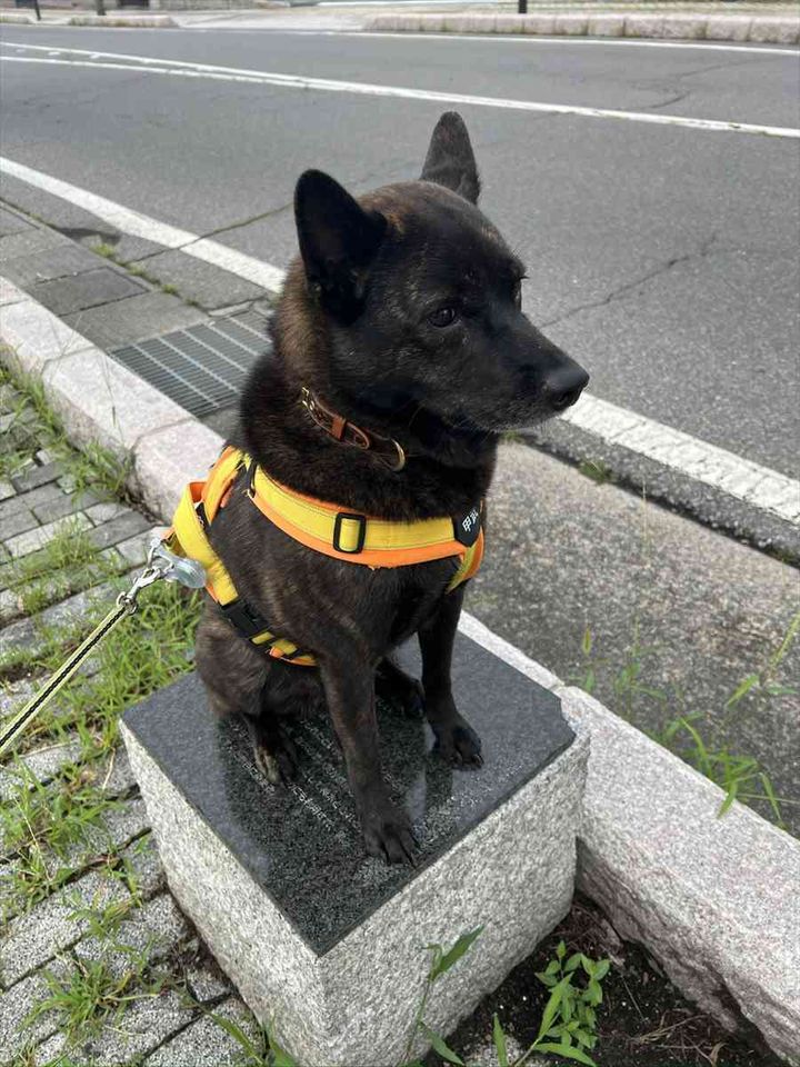 甲斐犬が銅像になっちゃった!?おさんぽ中にその場から微動だにしなくなった姿に「降りませんって顔してますね」「フィット感がすごい」