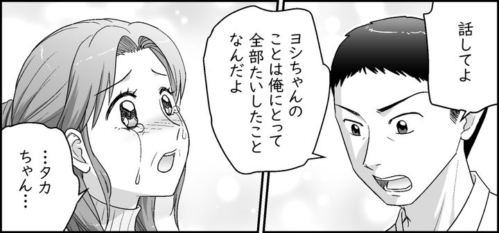 タカちゃんはいつもこうして、私の少しの気持ちの揺れにも気付いてくれる人。その愛情の深さに思わず涙があふれます。私はタカちゃんに促され、ユウコさんと直接話したことを打ち明けたのでした。