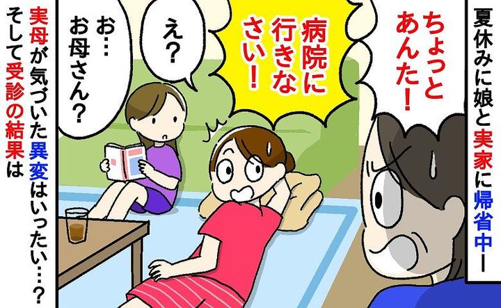 実家には10歳の娘と2人で帰り、リビングでのんびりしていました。すると、母が急に私を見るなり驚いて、「あんた、病院に行かないと!」と言い出したのです。