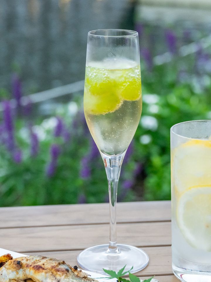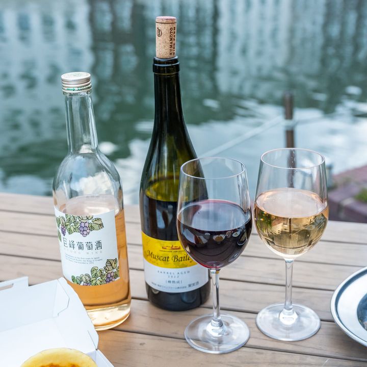 太陽の光をたっぷりと浴びた熊本県産シャインマスカットを贅沢に使用した、果実感あふれるスパークリングワインです。