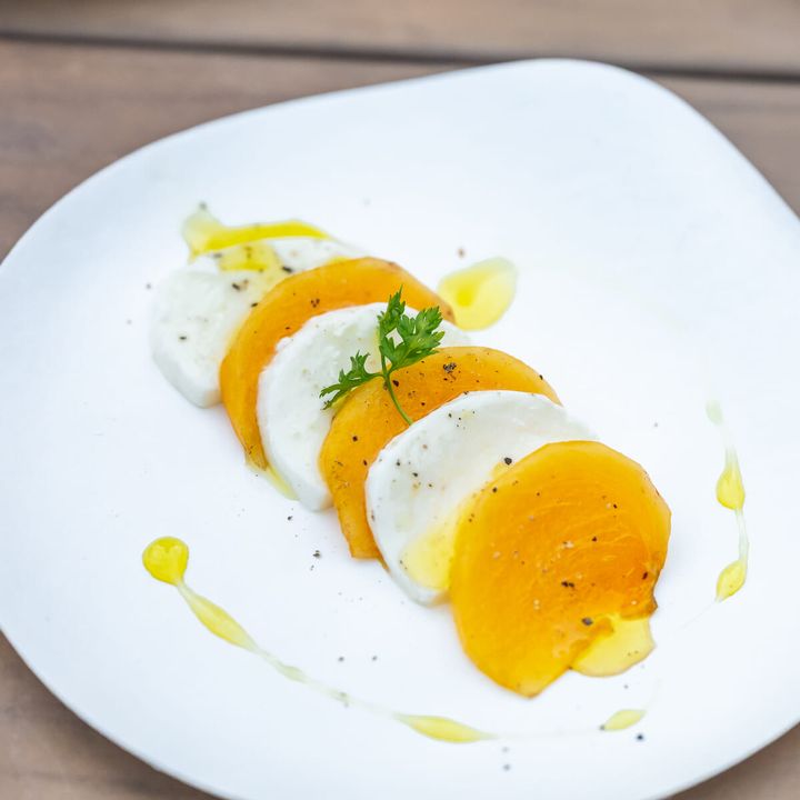 福岡県産甘柿とモッツァレラチーズの秋色カプレーゼ