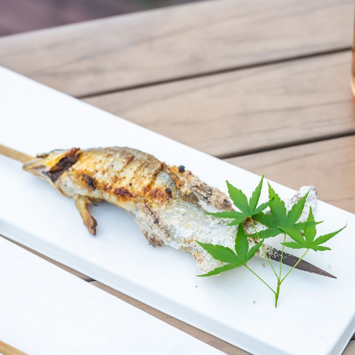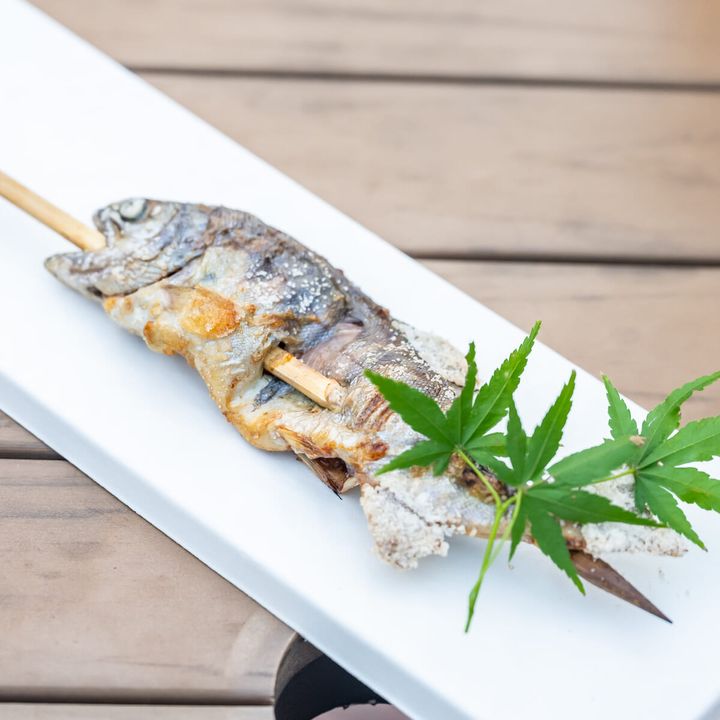 繊細な白身が特徴のヤマメや、川魚の王様と称される鮎を、シンプルかつ大胆なイロリ焼で提供します。