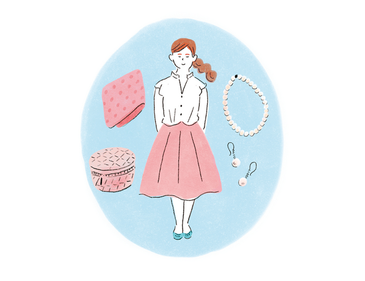 白いブラウス+薄いピンクといったコーディネートや、真珠のアクセサリー、ドット柄のハンカチや丸形ポーチなどの小物を、いつものファッションにプラスするだけでも開運に!